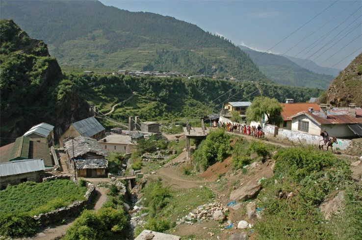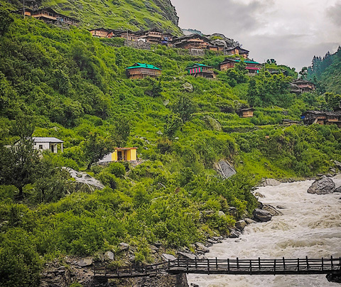 filled with life, greenery, and traditional Himalayan settlements, and the